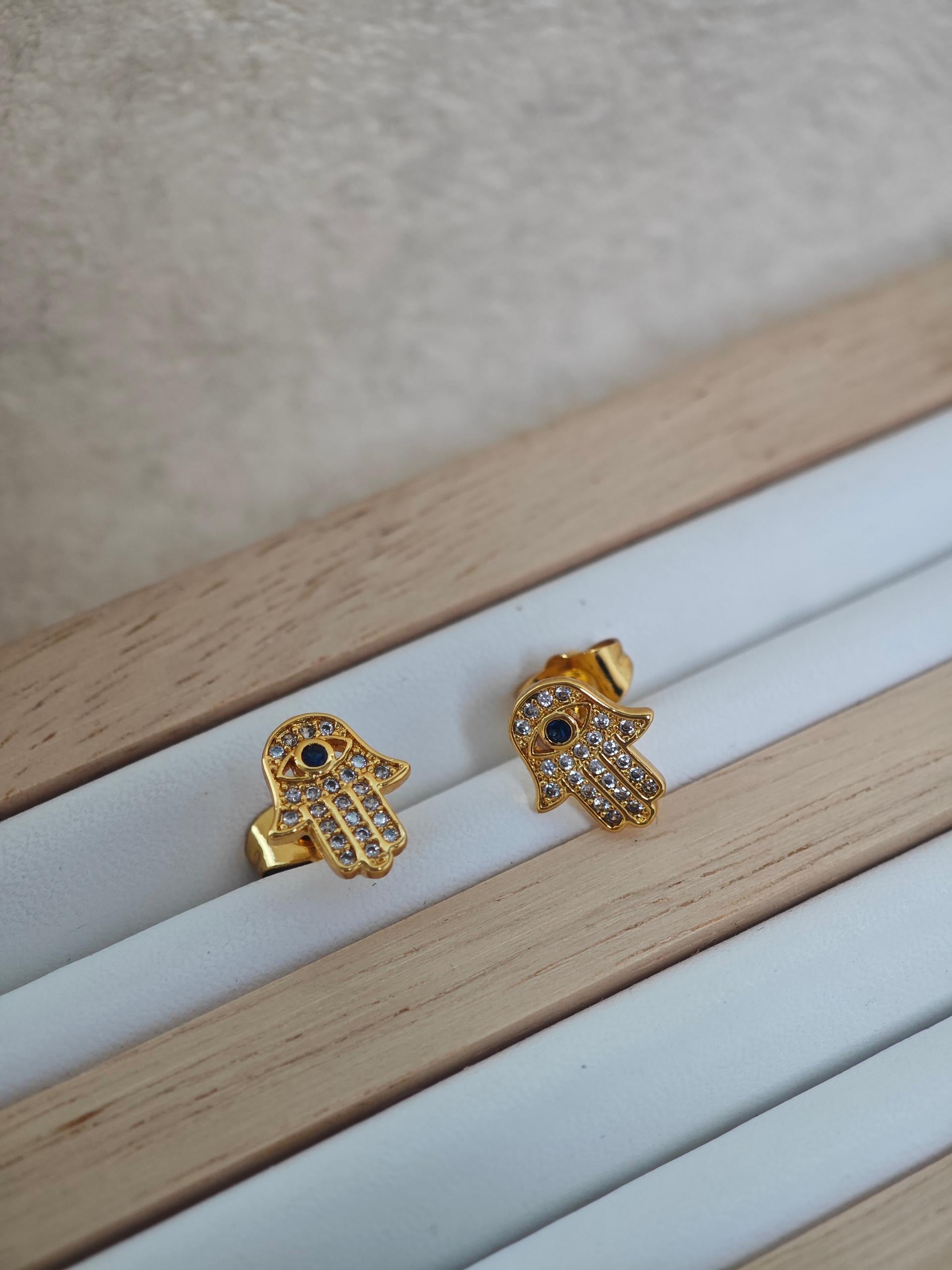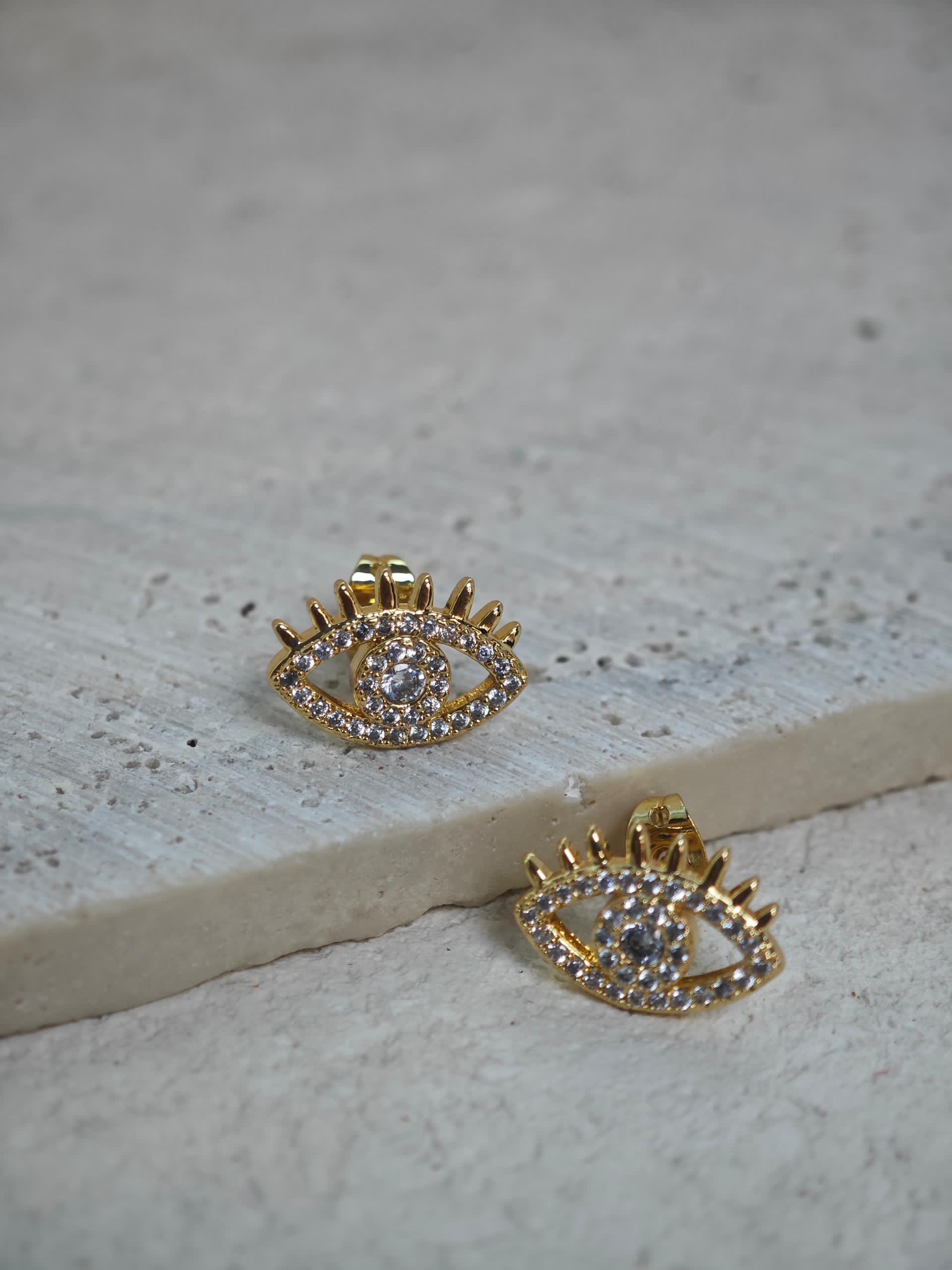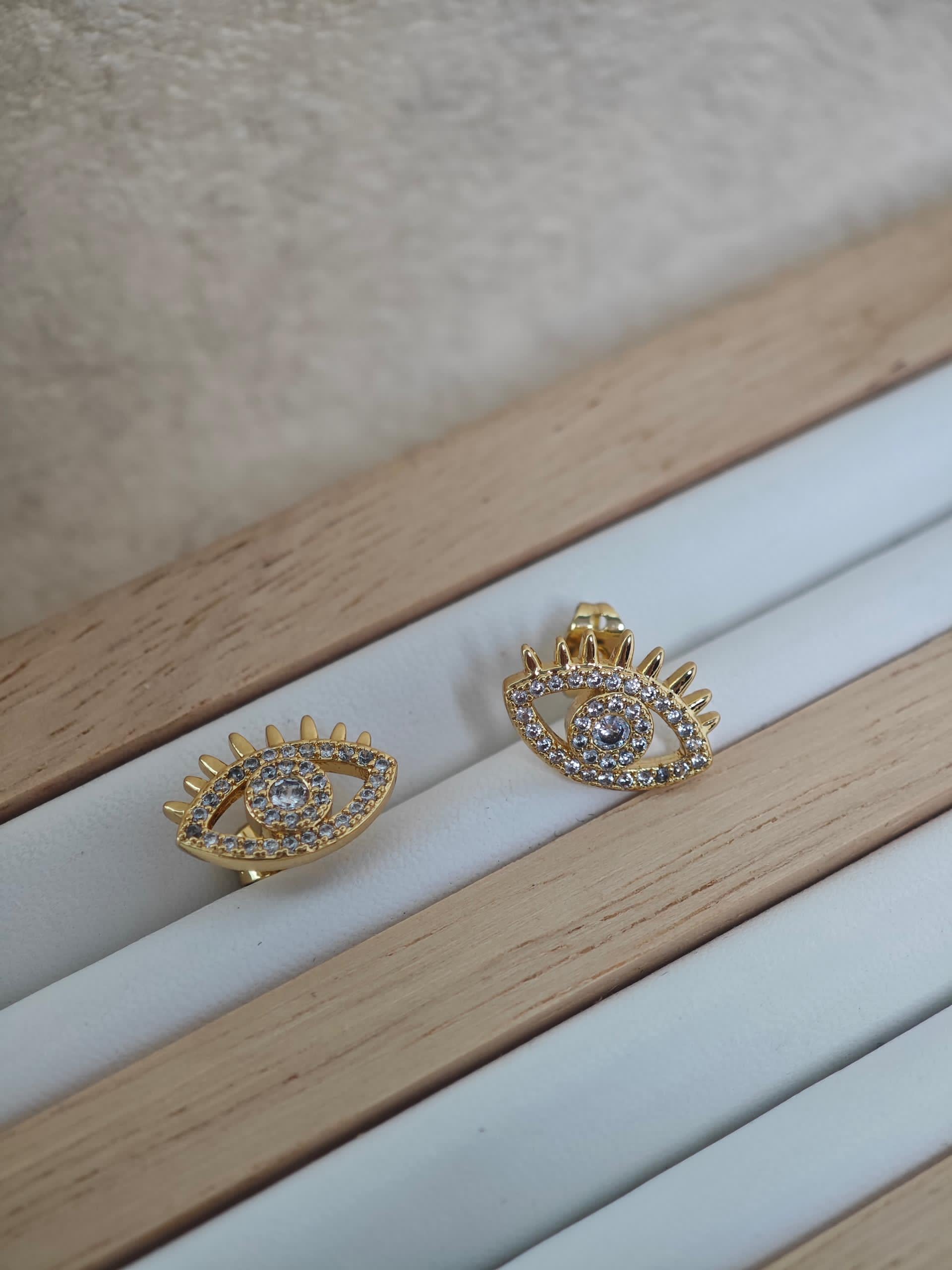 Estos aretes pegados en acero inoxidable cuentan con un ojo turco full brillo y esmalte en el centro para protección. Con mariposa en la parte trasera para mayor seguridad. Añade un toque de estilo y protección a tu look.